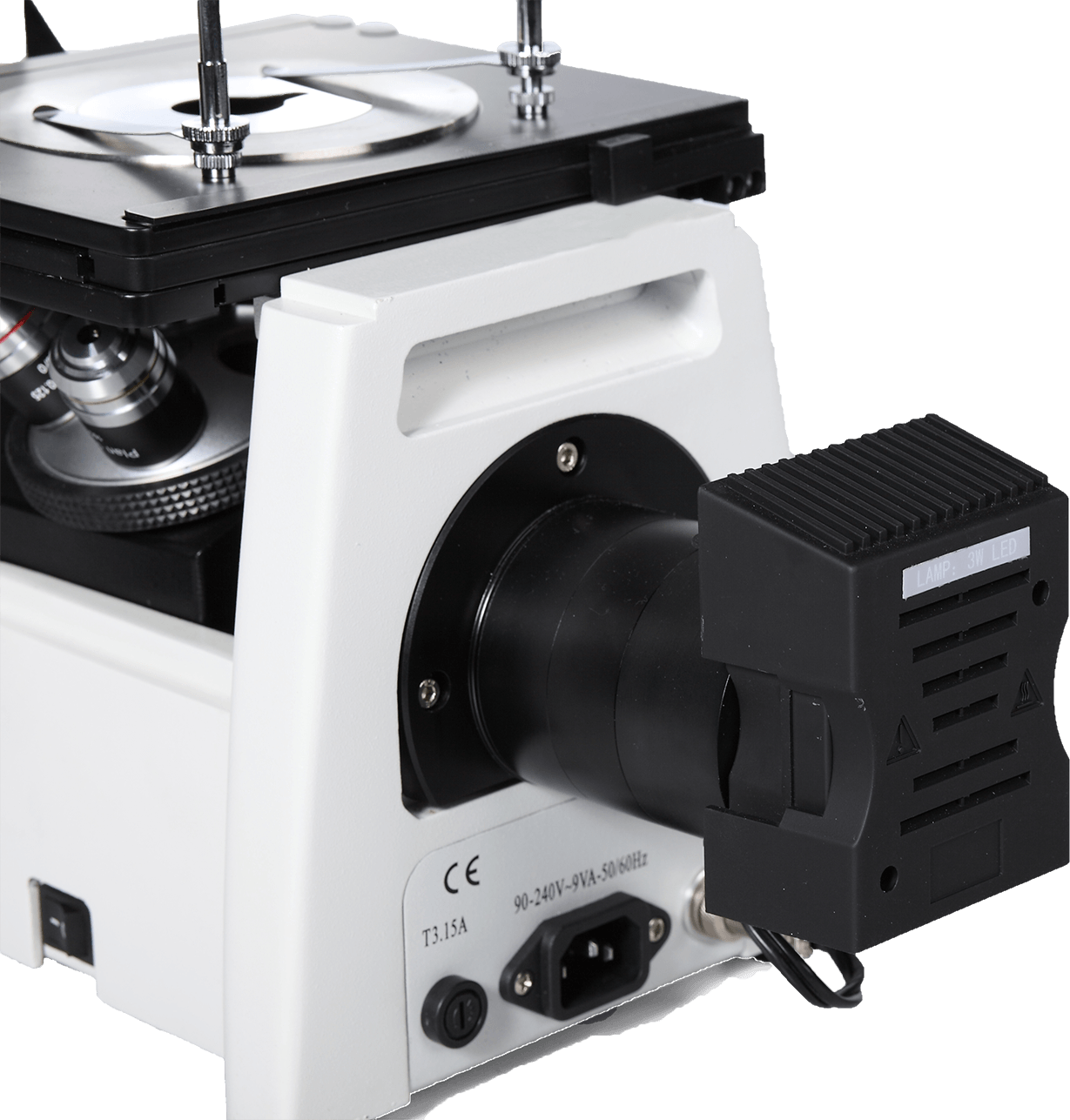 反射式柯拉照明,带可变孔径光阑和中心可调视场光阑,自适应90V-240V宽电压6V30W卤素灯(可选配单颗3W LED灯),光强连续可调